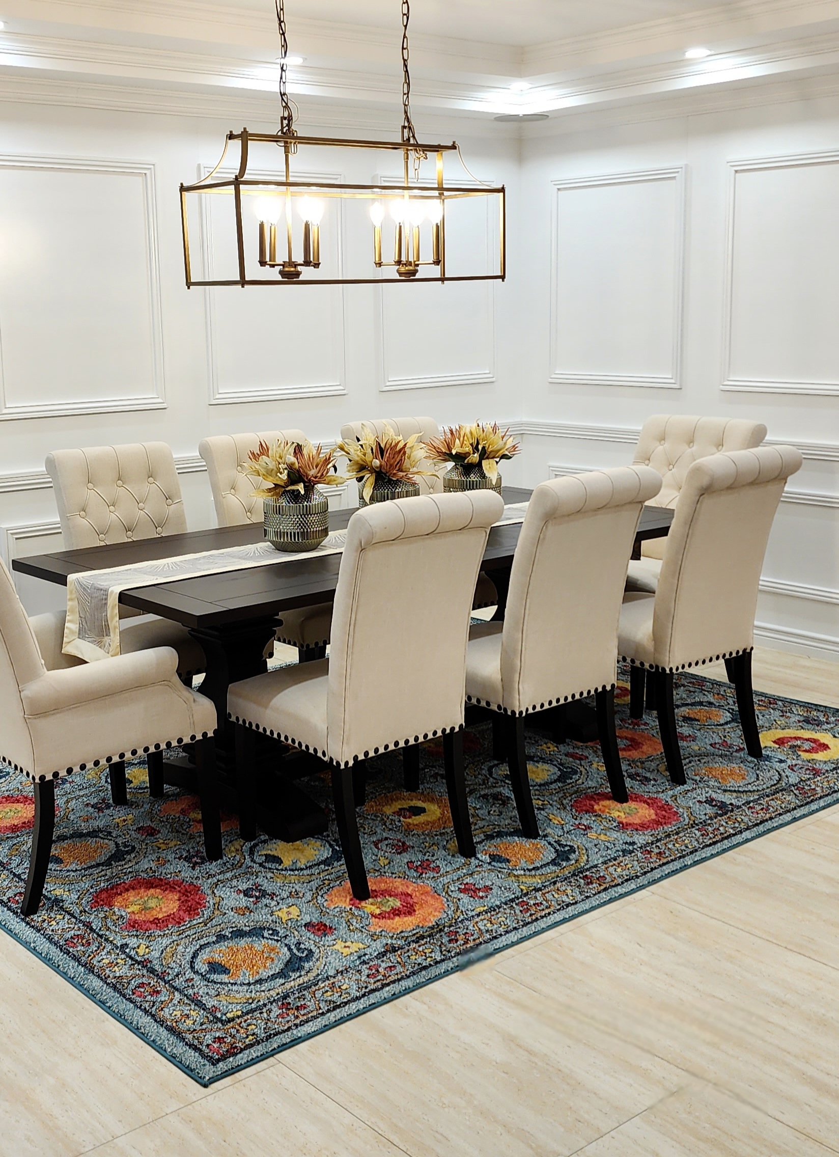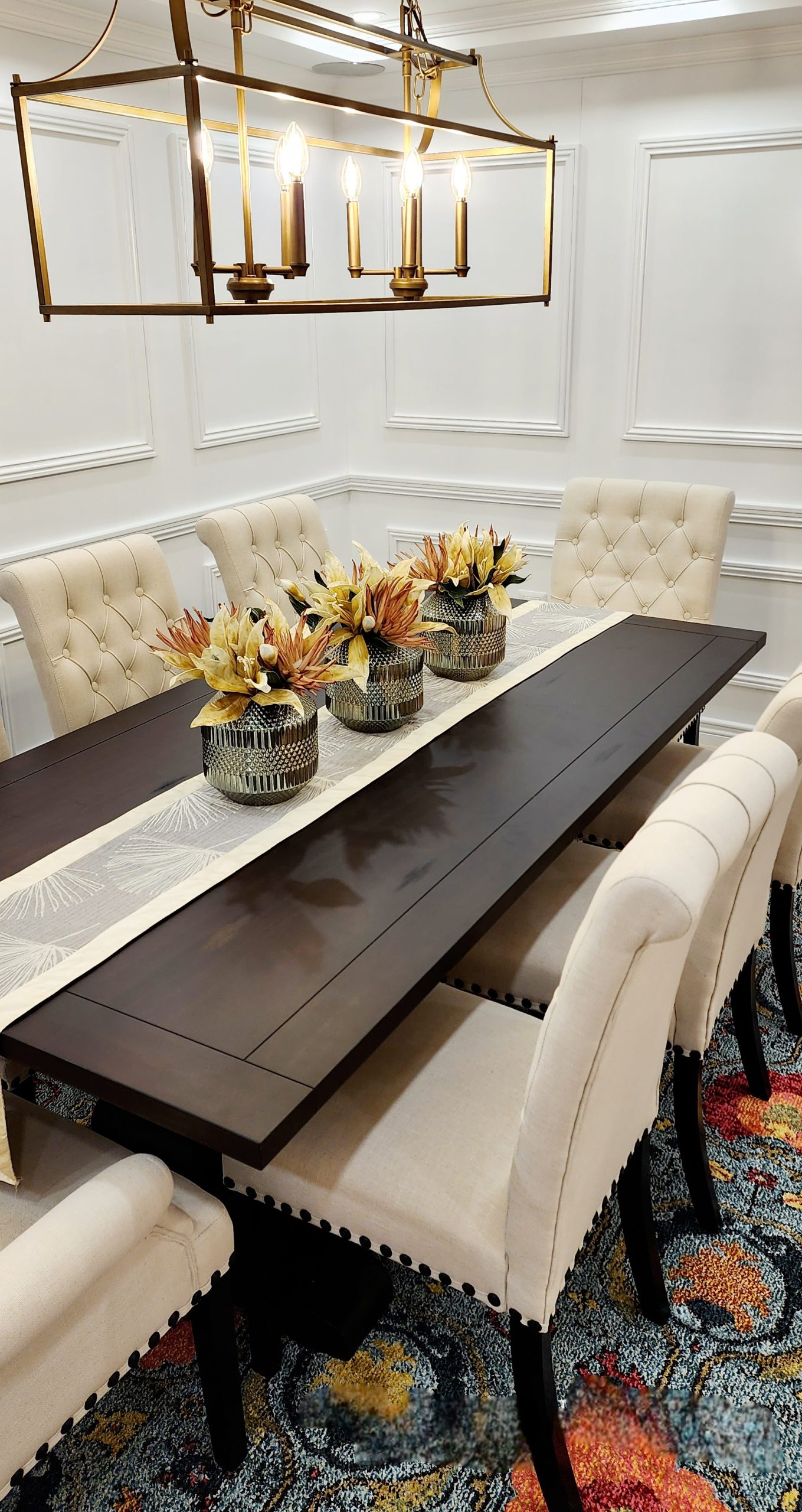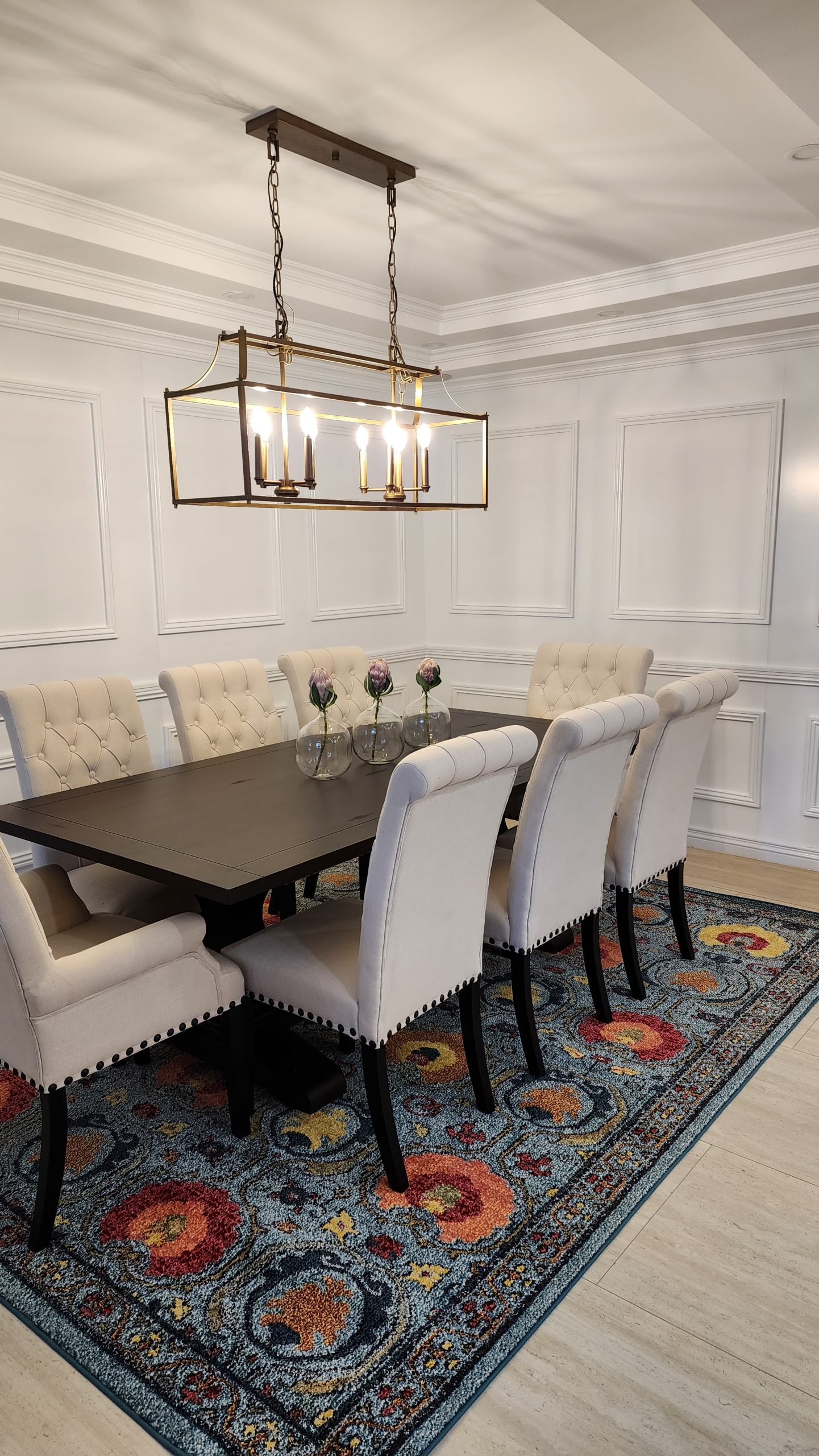 Starting from a blank slate, the goal was to create a clean and composed dining area suitable for hosting. The client wanted the space to feel elegant, with a pop of colour. We introduced a neutral base layered with a splash of colour to connect with existing artwork in the home. Furniture and finishes were selected for both proportion and cohesion. The result is a dining space that feels intentional and well-integrated with the rest of the residence.