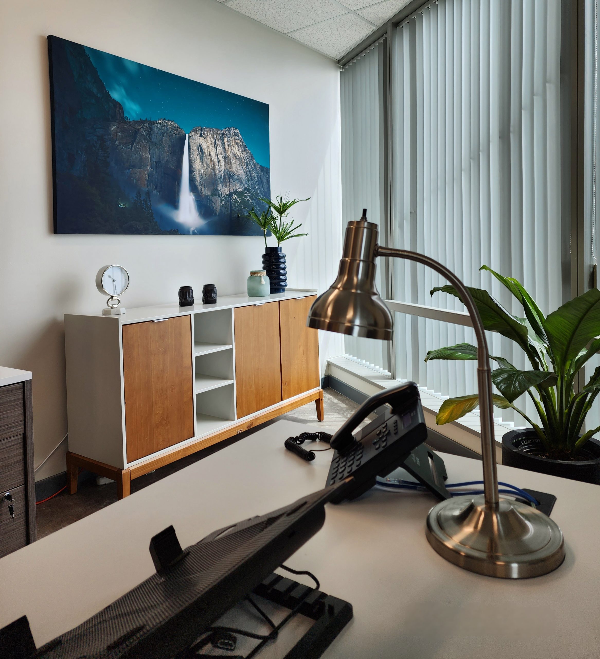 Beginning with an empty shell, we developed the full layout and design concept for this executive office. The spatial plan was structured to support workflow and privacy while maintaining a strong, masculine aesthetic. Furnishings and finishes were selected to reinforce a professional and focused environment. The completed space balances function with comfort and style.